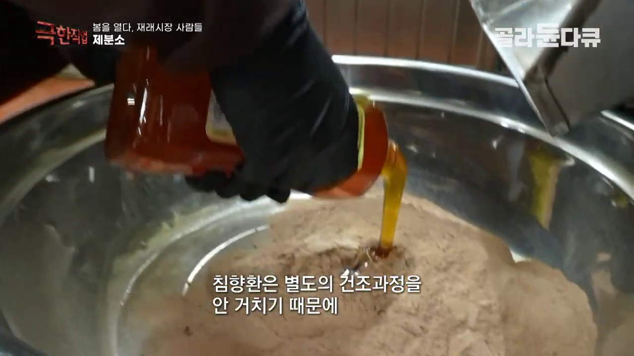 향긋한 한약재 내음 가득한 시장 골목, 그곳에서 묵묵히 약재를 갈아 특별한 가치를 만들어내는 사람들이 있습니다. 오늘 만나볼 극한직업은 바로 '제분소' 작업자들입니다. 밀가루를 떠올리셨다면 오산! 약재 시장의 제분소는 각종 건조 약재와 건강식품을 곱게 갈아 환으로 탄생시키는 마법 같은 공간입니다. 지금부터 약재를 황금알로 바꾸는 제분소의 흥미진진한 작업 현장으로 함께 떠나볼까요?